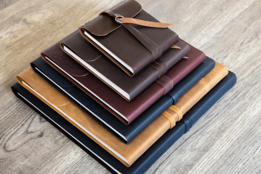 Cover options include Full Photo Wrap, Book Cloth, and a variety of gorgeous leathers and Eco leathers. Cover options include 3/4 binding, cover imprinting, and a variety of cover photo cameo options.